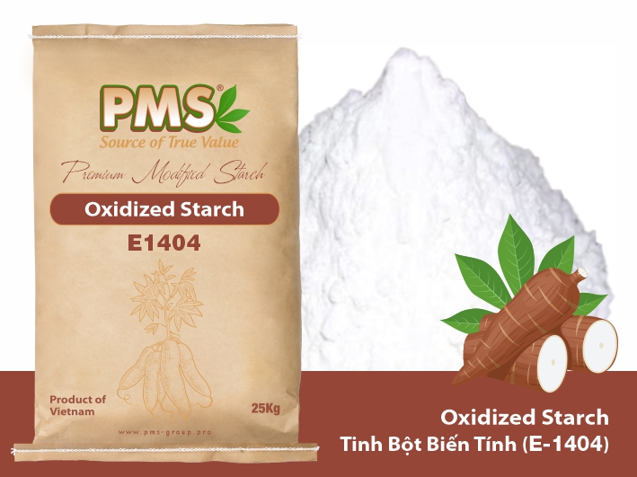 E1404 được tạo ra bằng cách xử lý tinh bột thông thường với các chất oxy hóa như natri hypoclorit (NaOCl) theo đúng tiêu chuẩn sản xuất tốt (GMP). Quá trình này làm đứt gãy các liên kết glucoside trong phân tử tinh bột, dẫn đến cấu trúc hạt bị phá vỡ một phần, tạo ra các chuỗi liên kết ngắn hơn so với tinh bột thông thường.